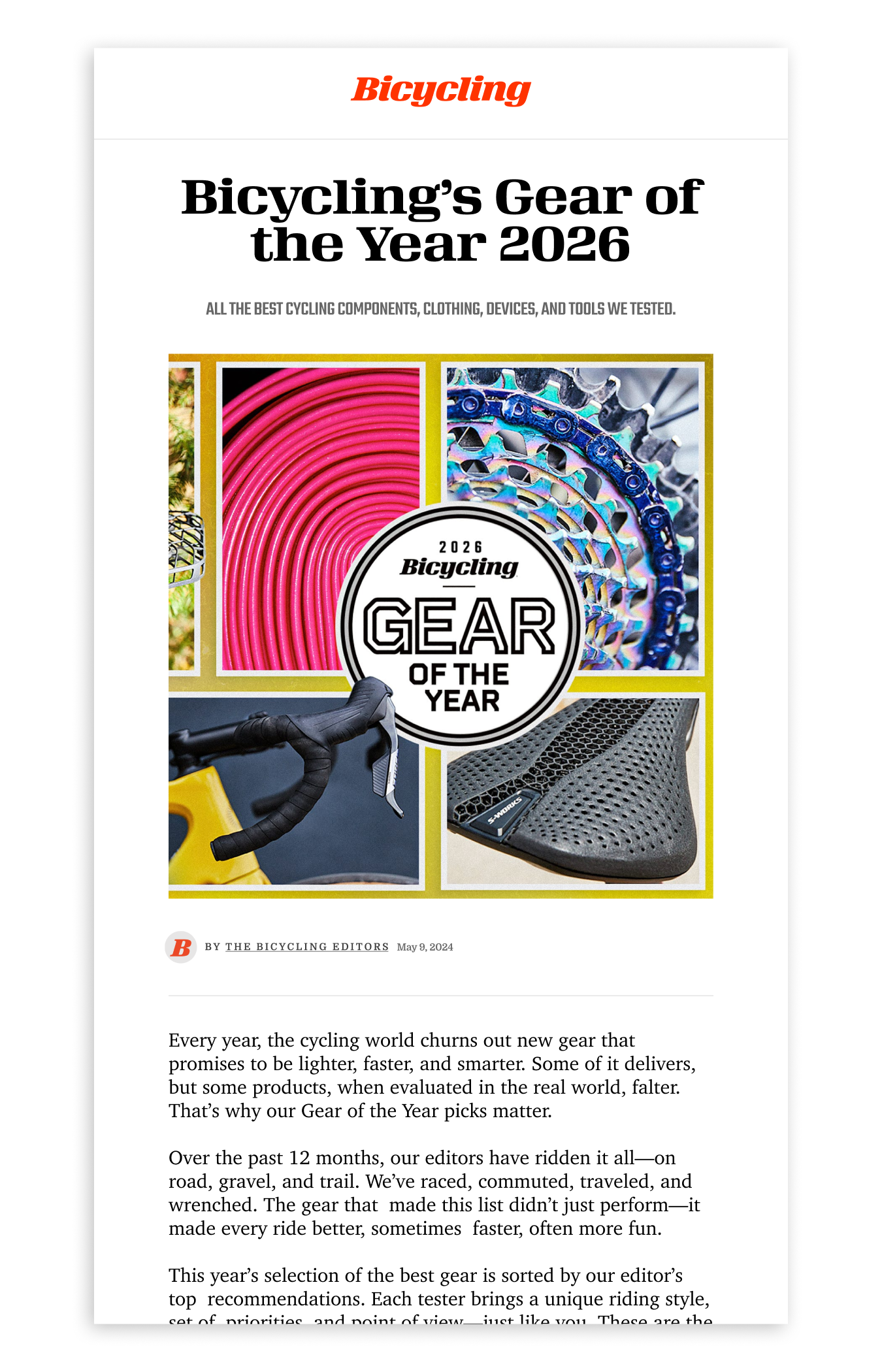 Deep collection of supporting design for Bicycling stories. Including lead images, tables, graphs, and award packages.